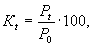 где Pt - значение показателя после испытании к моменту времени t, определяемое по п. 2.4.6;