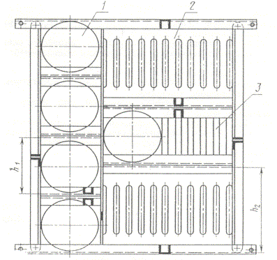 1 - образец в форме диска; 2 - образец в форме лопатки; 3 - образец в форме бруска; h1 - высота рамки для образца 1; h2 - высота рамки для образца 2