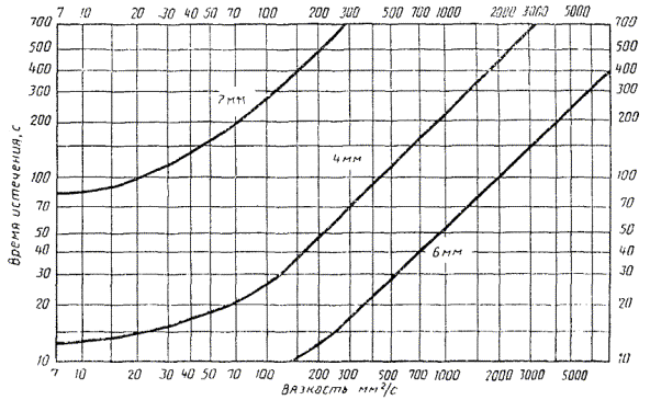 Зависимость времени истечения от вязкости лакокрасочных материалов указана в справочном приложении.
