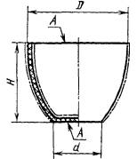 При определении химической стойкости посуды тигель наполняют на 0,75 номинальной вместимости 50 г/л раствором щелочи (углекислого натрия или едкого натра), покрывают часовым стеклом и выдерживают на водяной бане в течение 4 ч при кипении. При этом глубина погружения в баню должна быть не менее 0,5 высоты тигля. После кипячения тигли вынимают из водяной бани, промывают сначала раствором 1 н. соляной кислоты, затем дистиллированной водой и сушат при температуре 140 - 150 °С в течение 4 ч с последующим охлаждением в эксикаторе не более 3 ч. Затем каждый тигель взвешивают и определяют потерю массы на 1 см2 покрытой жидкостью поверхности.