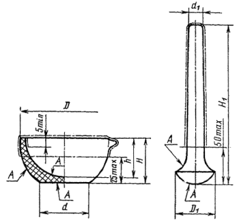 На тиглях № 3-6, воронках Бюхнера, выпарительных чашках № 3-б, ступках, пестиках, ложках и шпателях № 2-4, вставках для эксикаторов наносят товарный знак предприятия-изготовителя.