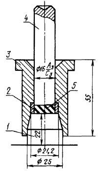 1 - пробка; 2 - кольцо; 3 - направляющая втулка; 4 - поршень; 5 - пек