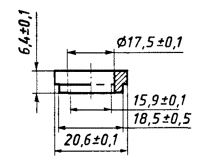 - кольца из латуни конусообразные (черт. 5) высотой (6,4 ± 0,1) мм, внутренним диаметром внизу (15,9 ± 0,1) мм, внутренним диаметром вверху (17,5 ± 0,1) мм, внешним диаметром над заплечиком (20,6 ± 0,1) мм, внешним диаметром под заплечиком (18,5 ± 0,5) мм;