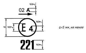 3.3 должно быть предусмотрено место достаточной величины для знака официального утверждения и дополнительных обозначений, предусмотренных в 4.2; это место должно быть указано на чертежах, упомянутых в 2.2.1.