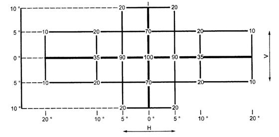 6.1 По исходной оси сила света, испускаемого каждым из представленных устройств, должна быть не ниже минимальной и не выше максимальной из указанных ниже значений.