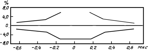 - расхождение во времени сигналов яркости и цветности с погрешностью, не превышающей ± (5 + 0,1/В/ 1) ;