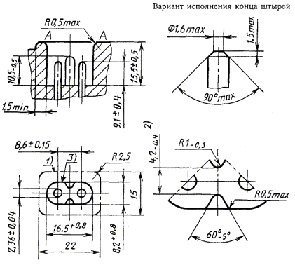 - введены определения основания контактного штыря и удерживающего (фиксирующего) устройства (3.7 и 3.8), формующих винтов (3.18, 3.19), типовых и приемо-сдаточных испытаний (3.21 и 3.22);