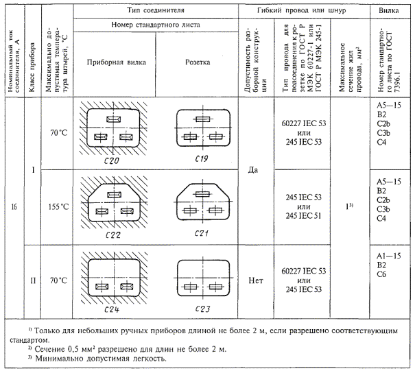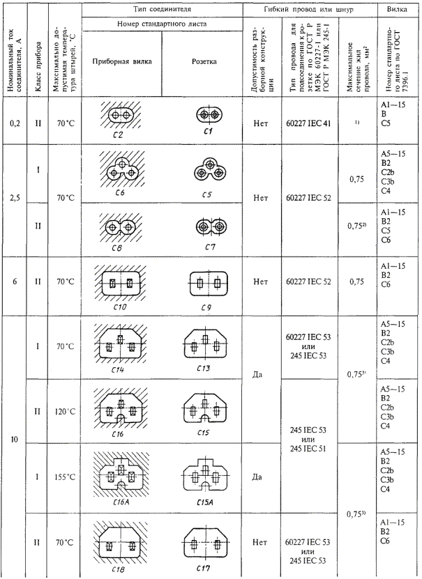 Дополнительные требования к соединителям конкретных типов приведены в комплексе стандартов ГОСТ Р 51325 «Соединители электрические бытового и аналогичного назначения».