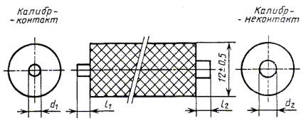 Когда этот калибр полностью вставлен, самая длинная вилка («калибр - контакт») должна устанавливать контакт, а самая короткая вилка («калибр - неконтакт») не должна устанавливать контакт.