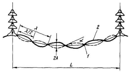 1.5. Основными величинами, характеризующими колебания проводов в подпролетах, являются частота, длина полуволны и амплитуда колебаний.