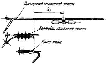 Повреждения проводов в натяжных зажимах обычно происходят в зоне выхода из устья зажима.