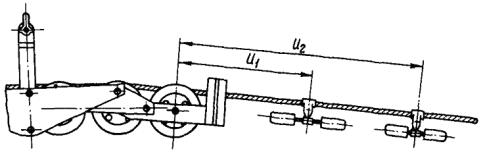 1.8. Измерение амплитуды отклонения провода от нейтрального положения может осуществляться механическими устройствами, позволяющими фиксировать максимальные за период наблюдения размахи колебаний проводов в диапазоне от 50 до 400 мм (2А ³ 50, 100, ..., 400 мм). Регистраторы колебаний устанавливаются в пучности полуволны колебаний - в середине подпролета между распорками.