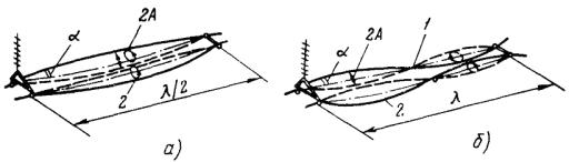 Длиной полуволны колебаний называется расстояние между двумя соседними узловыми точками колебаний; две соседние полуволны образуют полную волну колебаний.