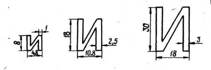 Другие размеры шрифта (толщина контура, ширина обозначения) выбирается по ГОСТ 2930-62 для соответствующей высоты шрифта (8, 18, 30 мм).