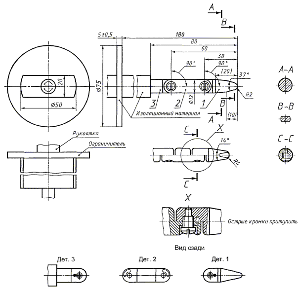 Амплитудное значение напряжения в установившемся режиме до 42,4 В или значение напряжения 60 В постоянного тока обычно не считают опасным в сухих условиях для области контакта, эквивалентной руке человека. Оголенные части, которых касаются или которыми оперируют, должны быть заземлены или надлежащим образом изолированы.