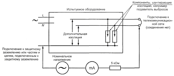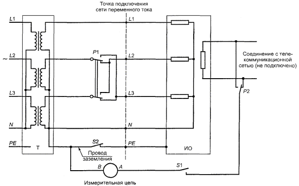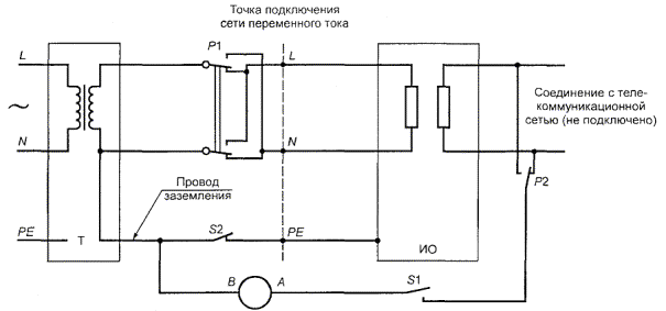 Чтобы рассмотреть самый худший случай, приведенный в настоящем приложении, будем считать, что ТЕЛЕКОММУНИКАЦИОННЫЕ СЕТИ не подсоединены и проводники ПИТАНИЯ ОТ СЕТИ ПЕРЕМЕННОГО ТОКА и люди как тела (ОБСЛУЖИВАЮЩИЙ ПЕРСОНАЛ или ОПЕРАТОРЫ) заземлены. Необходимо отметить, что ОБСЛУЖИВАЮЩИЙ ПЕРСОНАЛ может касаться частей, которые НЕ ДОСТУПНЫ ДЛЯ ОПЕРАТОРА. «Заземленная» цепь означает, что она или непосредственно заземлена, или некоторым способом, подключена к земле так, что ее потенциал относительно земли установлен.