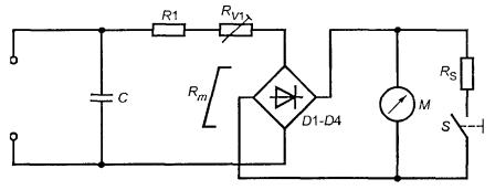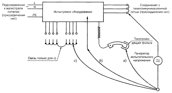 Ток IС характеризуется относительно высоким напряжением, высоким импедансом источника, и его значение в значительной степени не зависит от рабочего напряжения электронной цепи. В настоящем стандарте ток IС через тело человека ограничивают, применяя при испытании измерительный прибор из приложения D, который грубо моделирует тело человека.