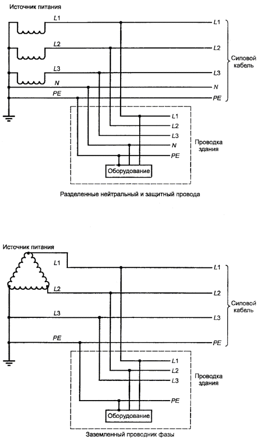Заземленная фаза и независимое заземление оборудования
