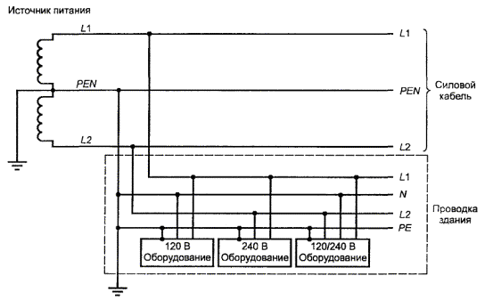 Рисунок V.4 - Пример однофазной трехпроводной TN-C системы энергопитания