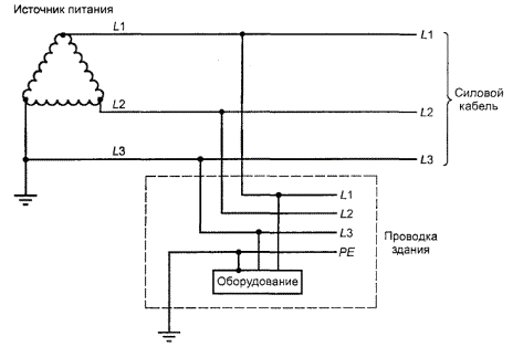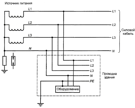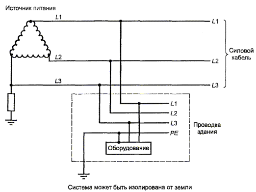 Рисунок V.7 - Пример трехпроводной (с нейтралью) IT системы энергопитания