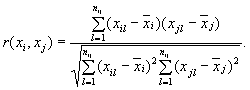 r(xi, xj) - коэффициент корреляции оценок i-й и j-й входных величин;