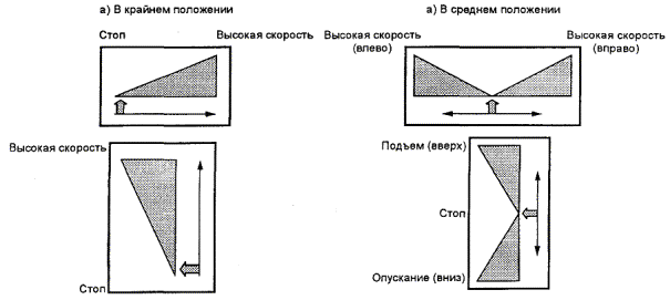 Направление действия определяется относительно оператора, стоящего на рабочем месте лицом к органу управления. Рабочее место оператора на каждом рисунке таблицы обозначено номером рисунка.