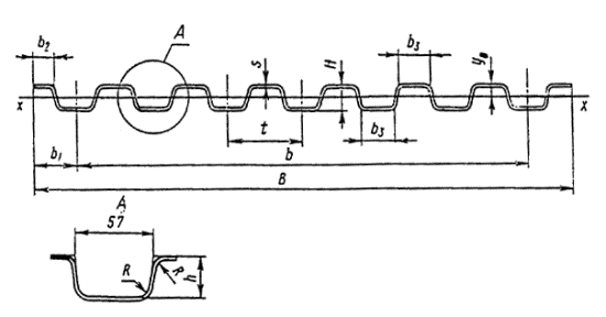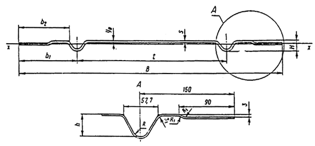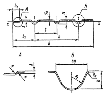 СТАЛЬНЫЕ ГНУТЫЕ Сортамент Steel roll-formed corrugated sections. Dimensions |