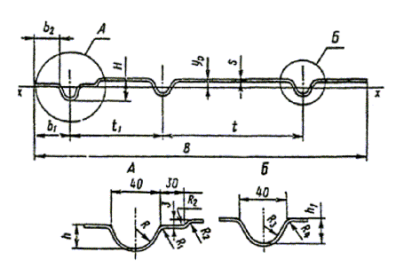 2. Шаг, ширина, радиусы кривизны и глубины гофров контролируются при расточке валков, а на готовом профиле не контролируются.
