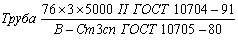 Труба с наружным диаметром 76 мм, толщиной стенки 3 мм, мерной длины, II класса точности по длине, из стали марки Ст3сп, изготовленная по группе В ГОСТ 10705-80: