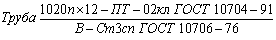 Труба с наружным диаметром 1020 мм, повышенной точности изготовления, толщиной стенки 12 мм, повышенной точности по наружному диаметру торцов, 2-го класса точности по овальности, немерной длины, из стали марки Ст3сп, изготовленная по группе В ГОСТ 10706-76