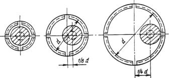 Вытачивать образцы следует так, чтобы продольные оси стержня и образца были параллельны. При диаметре стержня до 40 мм включительно продольные оси стержня и образца могут совпадать, при диаметре стержней от 45 до 60 мм и от 70 до 80 мм расстояние от оси стержня до оси образца должно соответственно составлять 1/8 и 1/4 d (черт. 1)