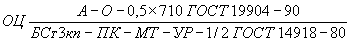 Оцинкованная рулонная сталь с дифференцированным покрытием толщиной 0,5, шириной 710 мм, повышенной точности прокатки А, с обрезной кромкой О, марки БСт3кп, под окраску ПК, без узора кристаллизации МТ с уменьшенной разнотолщинностью УР, с покрытием на одной стороне первого, а на другой второго класса по ГОСТ 14918-80: