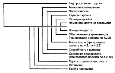 4.3.2 Маркировка проката должна содержать группу прочности по минимальному значению временного сопротивления, группу отделки поверхности, размер проката, способность к вытяжке. При изготовлении проката в соответствии с требованиями 4.1.17 указываются обозначения - ШТ.