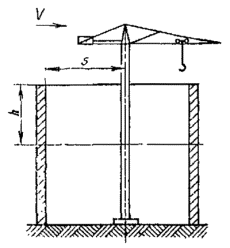8.1. Для кранов, установленных в сплошных ограждениях (корпуса градирен и пр.) учитывается верхняя часть затененной конструкции высотой h = 0,5s (см. черт. 5)