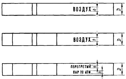 Примечание: На трубопроводах горячей воды и этилированного бензина надписи на отличительных поясах должны быть белые