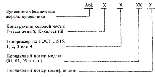 1.5. Порядок индексации асфальтоукладчиков конкретных моделей (проектируемых после 01.01.98) приведен на схеме: