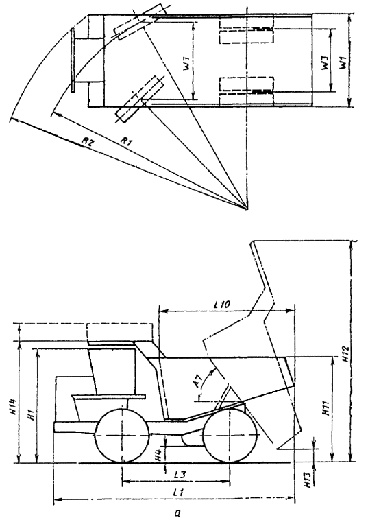 7.12. Габаритные размеры землевоза (представить контурный чертеж)