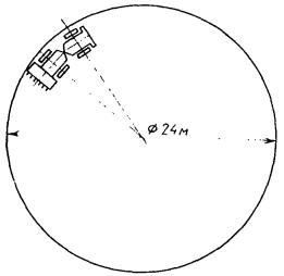 Альтернативный испытательный маршрут для машин, предназначенных для движения по дорогам, представляет собой габаритную окружность поворота машины диаметром 24 м, нанесенную на поверхность по п. 8.1 (черт. 3).