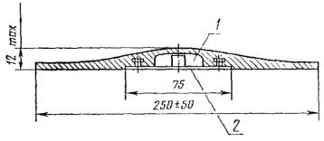 Акселерометр, воспринимающий вибрацию, передаваемую оператору, должен быть закреплен в середине тонкого диска диаметром (250±50) мм, помещенного между сидящим оператором и подушкой сиденья. Допускается использовать как жесткий, так и полужесткий диски, однако полужесткий диск рекомендуется главным образом для мягкой или облегающей подушки сиденья. Резонансная частота диска должна быть выше верхнего предела диапазона измеряемых частот. Конструкции дисков показаны на черт. 1 и 2. Диск помещают на сиденье таким образом, чтобы акселерометр располагался между седалищными буграми, и ось его была параллельна измерительной оси аz (черт. 3). Для сохранения позиции диска его фиксируют при помощи липкой ленты или другим аналогичным способом.