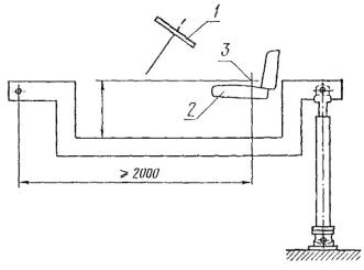 Если испытательный вибростенд имеет рычажную конструкцию, подобно изображенной на черт. 5 (п. 8.1), то акселерометр для измерения вибрации у основания сиденья должен быть на таком же расстоянии от точки опоры рычага (с отклонением не более ±20 мм), что и акселерометр на диске, помещаемом на сиденье.