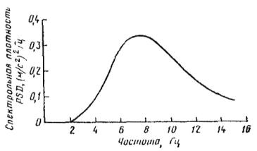 PSD - спектральная плотность, равная отношению среднего квадрата ускорения к ширине полосы пропускания фильтра, (м/с2)/Гц;