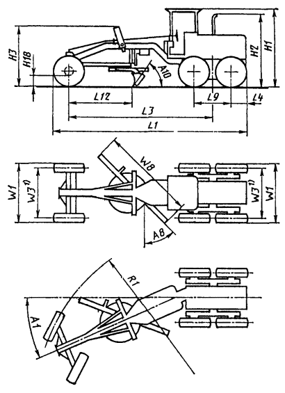 Определения размерных характеристик, относящихся только к автогрейдерам, а также определения Н18, Н19, W9, W14, W15, А9, A11, A12 приведены в приложении А.
