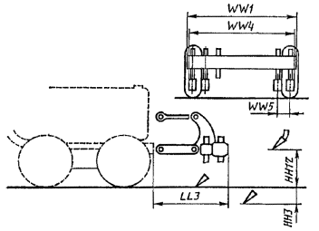 Расстояние по координате Z от GRP до верхней точки плуга у переднего конца одноотвального плуга или у носка двухотвального плуга |