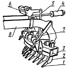 6.1.1. Кирковщик - механизм с зубьями для внедрения и рыхления на небольшую глубину таких материалов, как грунт, асфальтовые, гравийные и подобные дорожные покрытия. Кирковщик может быть установлен впереди передних колес автогрейдера или между передними и задними колесами (см. черт. 16).