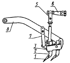 6.12. Рыхлитель - дополнительное оборудование, состоящее из рамы, соединенной посредством кронштейнов крепления с задней частью базовой машины, и снабженное одним или несколькими зубьями (см. черт. 17).