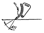 Угол между GRP и плоскостью, проходящей через переднюю поверхность ножа или по касательной к передней поверхности у нижнего края криволинейного ножа, когда нижний край ножа находится на GRP |