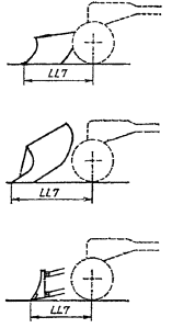 Расстояние по вертикали от GRP до плоскости Z, проходящей через нижний край ножа, когда этот край находится в плоскости X. Если имеется возможность регулирования угла резания, его регулируют так, чтобы отвал был максимально поднят над землей |