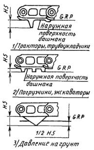 нижняя поверхность башмаков с грунтозацепами (см. Н5) (для тракторов, трубоукладчиков);
