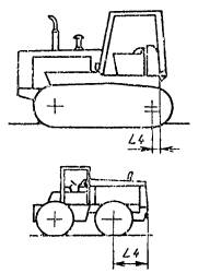 для гусеничных машин - через ось ведущего колеса и заднюю монтажную поверхность машины; |