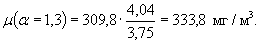 Если известно значение концентрации загрязняющего вещества при а = 1,4 и нормальных условиях, то концентрация загрязняющего вещества при нормальных условиях и α, отличающемся от 1,4, может быть рассчитана по формуле